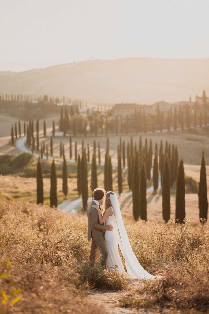 Tuscany at it’s best – bathed in golden light and filled with cypresses. View I+D’s breathtaking sunset wedding photoshoot in Tuscany.